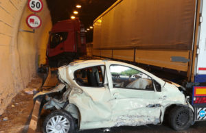 Galleria Avellola, scontro tra auto e camion: ferito 68enne