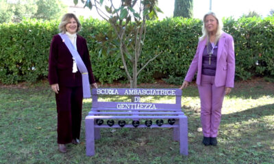 Benevento, l’Ispar ‘Le Streghe’ si tinge di viola: inaugurata la panchina della gentilezza