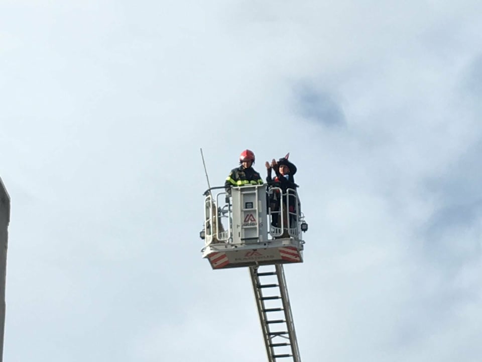 La magica befana, dopo aver riscontrato qualche problemino con il suo mezzo di trasporto, è stata soccorsa e recuperata grazie all’autoscala dei pompieri.