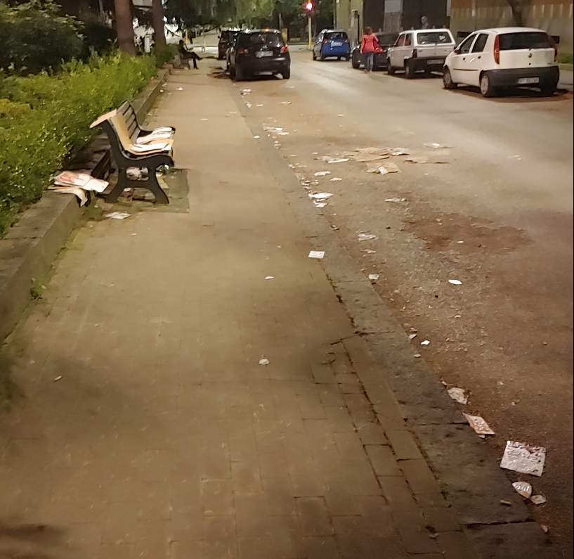 “Egregio direttore. Ieri sera ero in giro nel quartiere dove abito e mi riferisco a via Nicola Sala e strade limitrofe. Le foto che allego sono eloquenti e lasciano poco spazio ai commenti.