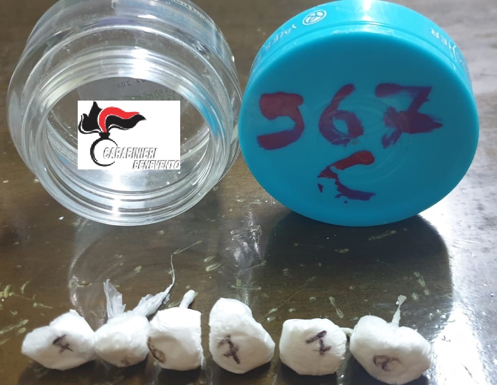 Sempre nell’ambito dei meticolosi controlli del territorio effettuati dai militari del Comando Compagnia di Benevento ieri, nel primo pomeriggio, i Carabinieri hanno rinvenuto nei pressi del cantiere per i lavori della rete fognaria vicino al Ponte Leproso, tra l’erba, un piccolo contenitore in vetro con all’interno sei dosi di cocaina pura, stranamente numerate, pronte per essere smerciata. Il peso complessivo dello stupefacente è di circa cinque grammi. Indagini in corso dei carabinieri per capire se lo stupefacente era lì occasionalmente o se il sito è un comodo punto di appoggio per spacciatori.