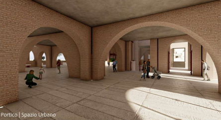 Al piano terra, invece, si intende mantenere l’idea della Piazza Coperta inserita nel progetto iniziale: uno spazio urbano aperto e completamente fruibile a servizio dei cittadini e dei visitatori caratterizzato da ampi archi che creano scorci suggestivi sulla città; sullo stesso livello si collocherà un Polo turistico per la promozione delle bellezze sannite, punto strategico da cui possono partire visite guidate per i turisti in città.