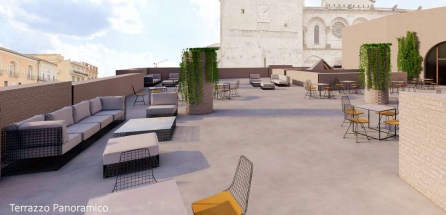 All’ultimo piano, dove si apre un’ampia terrazza panoramica, infine, sarà collocato un bar-ristorante che ospiterà eventi e degustazioni offrendo una vista suggestiva sul duomo storico della città.