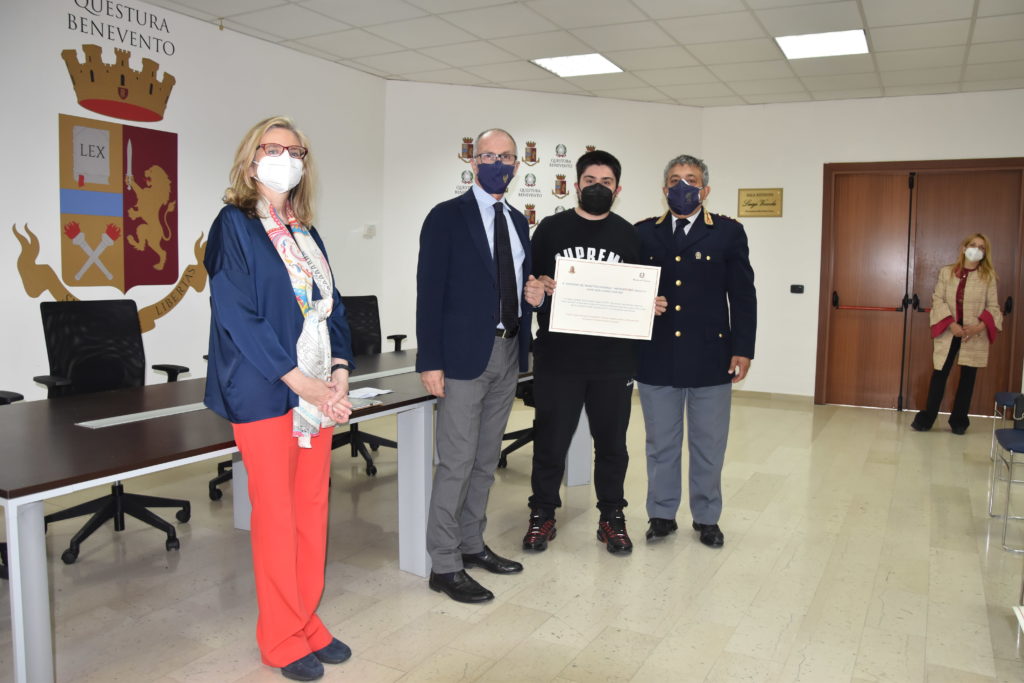 Nella mattinata odierna si è svolta la cerimonia di consegna, da parte del questore Luigi Bonagura, degli attestati ai ragazzi, appartenenti alle classi selezionate a livello provinciale, per la 4^ edizione del progetto/concorso “PretenDiamo legalità” per l’anno scolastico 2020/21, svolto dalla Polizia di Stato, in collaborazione con il MIUR-Ufficio Scolastico Provinciale.