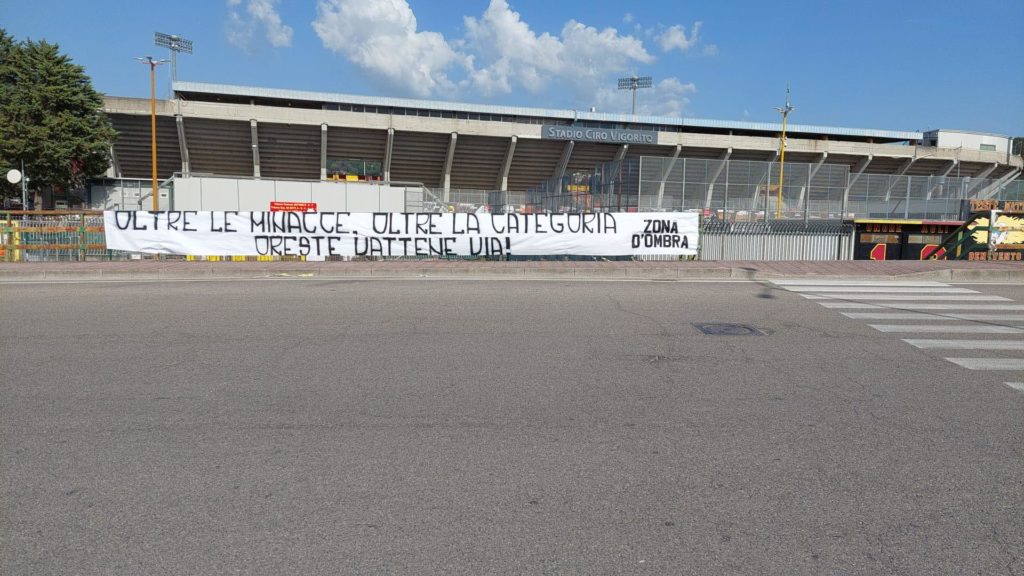 “Oltre le minacce. Oltra la categoria. Oreste vattene via!“: questo il messaggio che replicava alle dichiarazioni ieri mattina rilasciate dal presidente a margine dell’evento ‘Open Lab’ all’Iti Lucarelli: “I sogni li realizzano i folli e voi non siete folli, voi siete un popolo che sta molto con i piedi per terra. Siete attenti a tante altre cose ma state attenti anche a queste cose perché poi un giorno uno si sveglia male e perde anche il sogno, quindi manteniamoci calmi“.