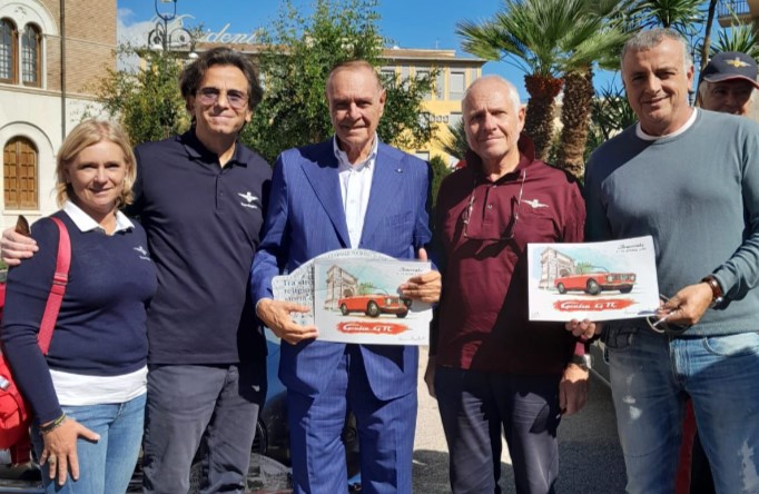 A fine manifestazione il Registro ha omaggiato l’Amministrazione comunale con i disegni simbolo della manifestazione raffiguranti l’Alfa Romeo GTC condotta da J. Manuel Fangio a Monza nel 1965.