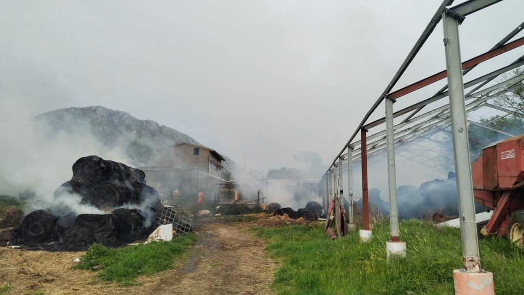 Secondo quanto si apprende, l’incendio ha interessato uno dei tre capannoni sotto il quale erano sistemati diversi rotoloni di paglia e fieno.
