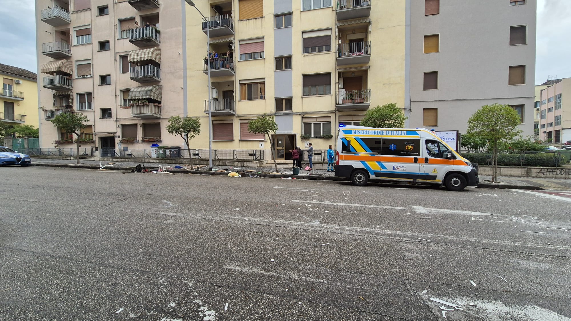 Benevento, momenti di follia al viale Mellusi: 27enne getta dal balcone mobili, sgabelli e rifiuti