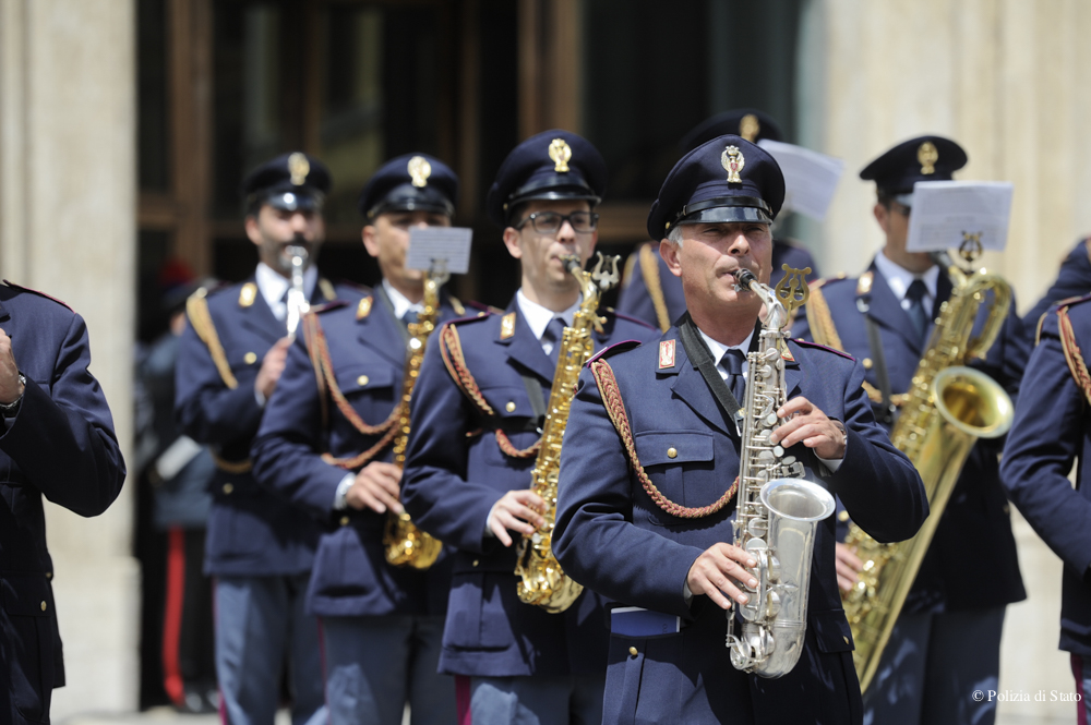 La Fanfara è un complesso musicale istituito dalla Polizia di Stato alla fine degli anni ’80 come formazione da parata, che si esibiva prevalentemente a cavallo per accompagnare le sfilate e le cerimonie ufficiali. Solo 20 anni fa è stato convertito in complesso musicale appiedato, il cui organico è stato arricchito con l’inserimento di strumenti ad ancia ed ampliato con la sezione ritmica. Oggi è composto da circa 50 musicisti diretti dal Maestro Massimiliano Profili e vanta un vasto repertorio che spazia da marce militari e sinfoniche a brani da concerto, abbracciando diversi generi musicali: dalle opere originali per banda alle colonne sonore, dalla musica leggera alle composizioni jazz.