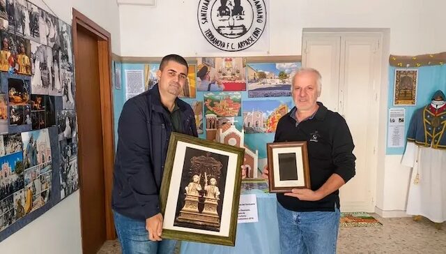 L’Assessore Comunale Amato Iuliano, curatore della mostra storico-fotografica e del Calendario del Santuario, ha ricevuto il negativo originale e lo sviluppo dell’immagine dei Santi durante la mostra, accogliendo e ringraziando personalmente la persona che ha voluto compiere questo gesto di grande valore per la comunità.