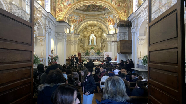 Oggi a Moiano è toccato essere il centro dell’azione FAI nella Città Caudina candidata a capitale italiana della cultura 2028. I piccoli ciceroni hanno presentato Il Ponte Nuovo,il primo ponte dell’Acquedotto Carolino che nasce a Bucciano dalle sorgenti del Fizzo e prosegue attraversando il territorio di Moiano e Sant’Agata de’ Goti fino a Caserta. A causa delle avverse condizioni del meteo, la cerimonia si è svolta in un altro luogo del cuore FAI: la splendida chiesa di San Sebastiano a Moiano. Dove i temi della presenza importante del Carolino hanno incrociato quelli della cultura barocca di cui la chiesa è esempio insigne.