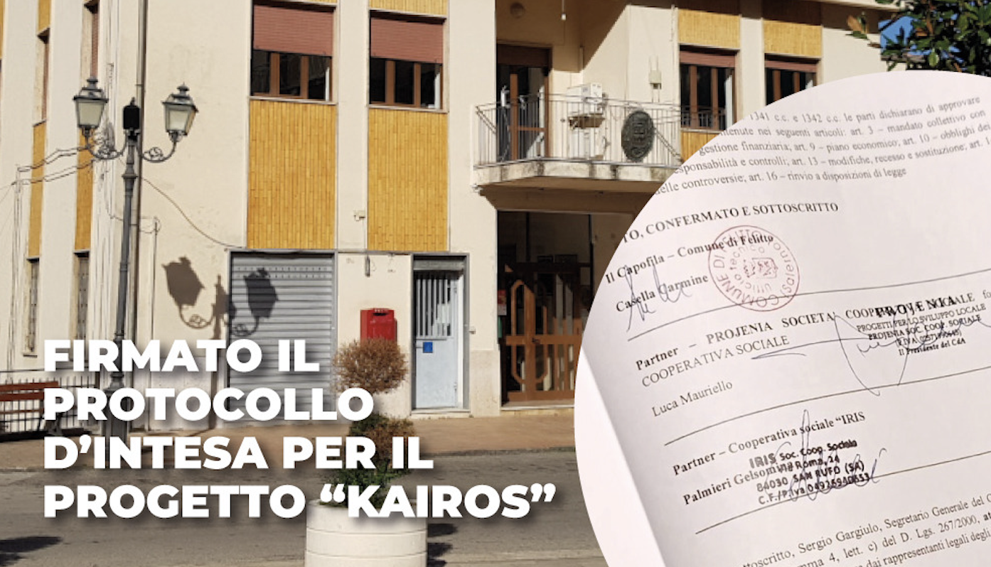 L’iniziativa è finanziata nell’ambito dell’avviso pubblico indetto dalla Regione Campania “P.I.A. – Programmi di Integrazione e Autonomia per i cittadini dei Paesi Terzi” (PR Campania FESR e FSE+ 2021-2027). Alla firma del protocollo hanno preso parte il Sindaco di Felitto, Carmine Casella, il Vicesindaco Marta Gnazzo, il Presidente del C.d.A. di Projenia Società Cooperativa Sociale, Luca Mauriello e la rappresentante della Cooperativa Sociale “IRIS”, Gelsomina Palmieri.