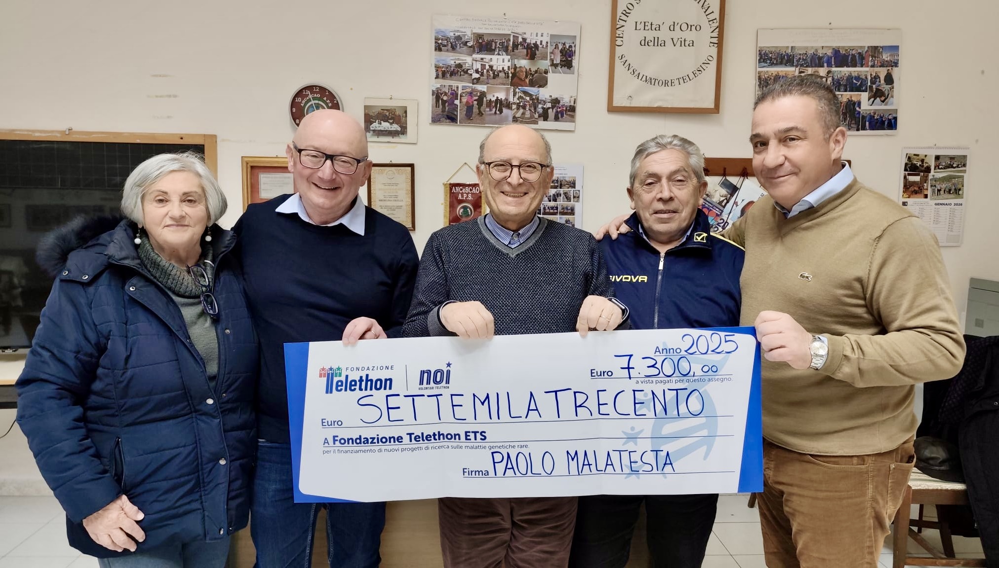 Un risultato record per la Fondazione Telethon che, con il sostegno dei soci del Centro Sociale Polivalente “L’Età d’Oro della Vita” APS di San Salvatore Telesino, chiude il 2025 con una raccolta fondi di 7.300 euro da destinare alle malattie genetiche rare.