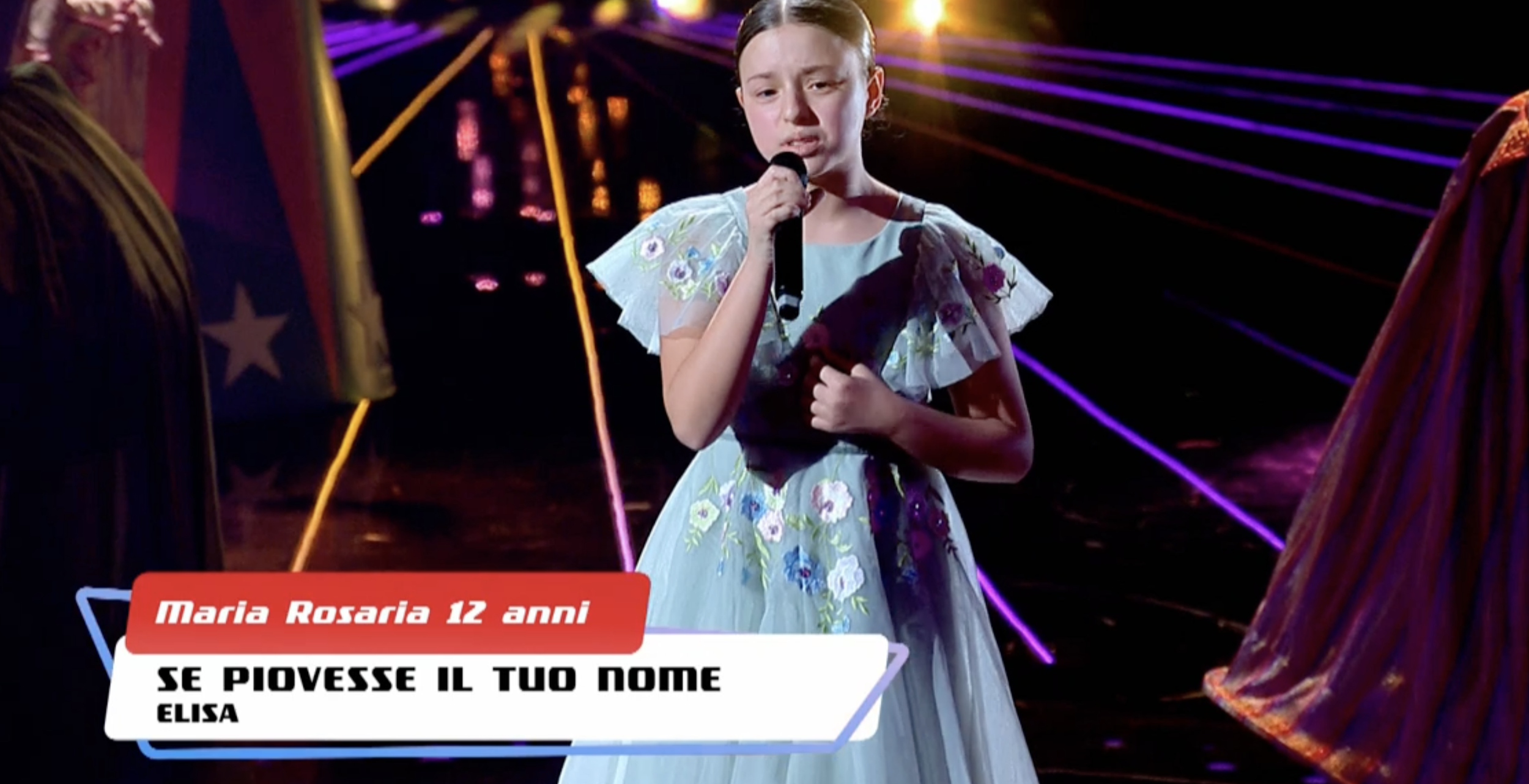 Tra i protagonisti più attesi della finale, la 12enne beneventana Maria Rosaria Rondina, talento cristallino del team Arisa, che anche nell’ultima puntata ha saputo lasciare il segno. Per lei la scelta coraggiosa di interpretare un brano tutt’altro che semplice: “Se piovesse il tuo nome” di Elisa. Una canzone intensa, tecnicamente complessa, che richiede controllo vocale, profondità interpretativa e grande sensibilità artistica. Maria Rosaria ha affrontato la prova con maturità sorprendente, regalando un’esibizione potente e raffinata, capace di strappare applausi convinti e complimenti sinceri.