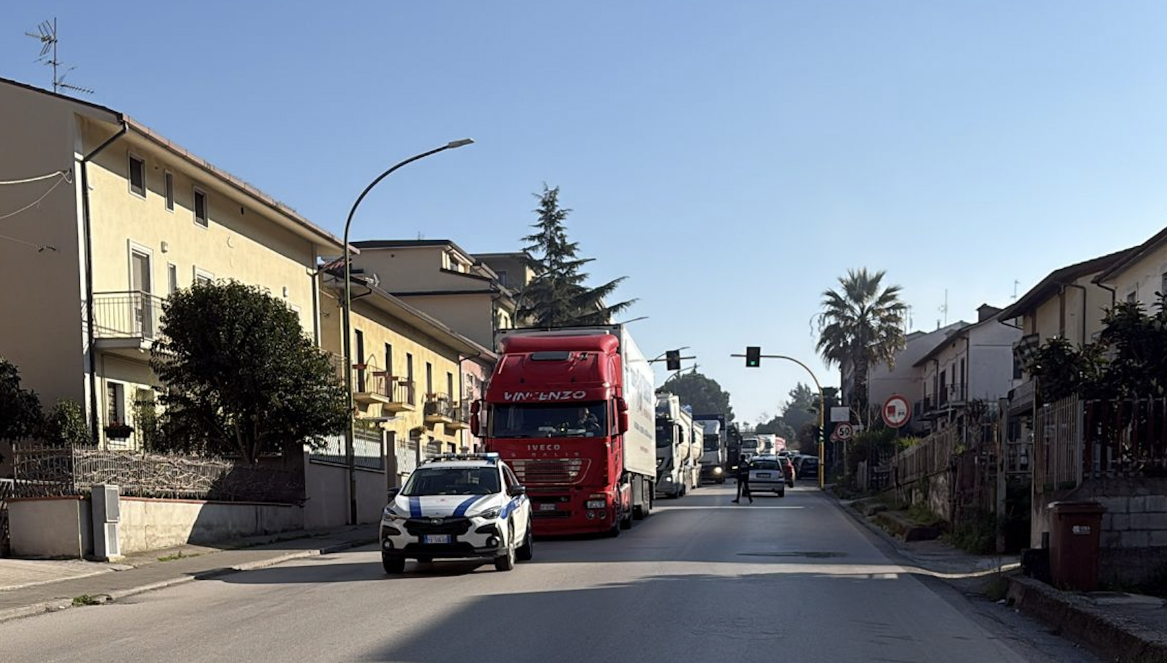 Per consentire la gestione della viabilità e le operazioni di rimozione del mezzo pesante, è stato istituito il senso unico alternato nel tratto interessato. Sul posto è intervenuta la Polizia Municipale, impegnata a regolare il traffico ed evitare ulteriori criticità.