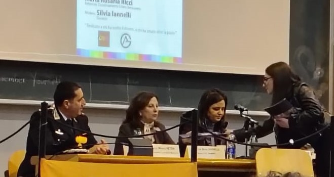 La presenza della signora Vittoria Iannotti Della Ratta, vedova dell’Appuntato Scelto Tiziano Della Ratta, medaglia d’oro al valore militare, ha dato forma a questo concetto. Raccontando il marito come uomo e padre, e descrivendo la sfida di crescere un figlio nel solco di un lutto così ingiusto, ha mostrato come il dolore possa trasformarsi in impegno civile quotidiano.