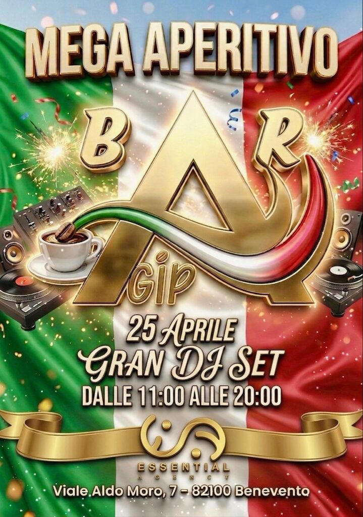 (Adv) Sabato 25 aprile, Benevento si prepara a vivere una giornata all’insegna della convivialità e del divertimento. In occasione della Festa della Liberazione, l’Agip Café di viale Aldo Moro, nel cuore del Rione Pacevecchia, lancia uno degli appuntamenti più attesi del weekend: il “Mega Aperitivo”, una maratona di gusto e musica pronta ad animare la città dalle 11 del mattino fino alle 20 di sera.
