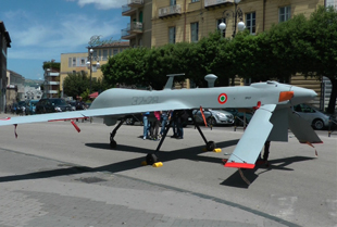 Una folla di passanti ha gremito piazza Castello, questa mattina, incuriositi dalla presenza di militari dell’aereonautica che si accingevano a montare un mock-up del velivolo “Predator”...