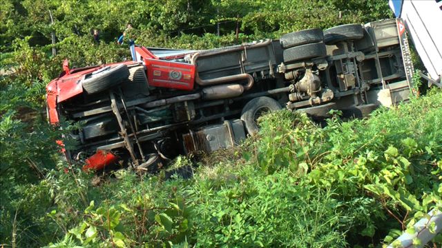 Ha perso il controllo del camion e, dopo aver sfondato il guard rail, è finito nella scarpata a margine della strada. Brutto incidente stradale questo pomeriggio...