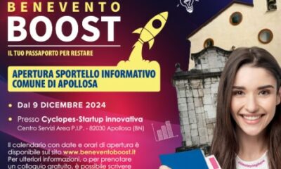 Ad Apollosa apre lo Sportello Informativo Auto-imprenditorialità Benevento Boost, che forma e supporta i giovani all’autoimprenditorialità. A servizio dell’intera provincia sannita, lo sportello sarà operativo dal...