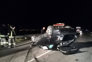 Ha perso il controllo della sua auto, forse a causa del manto stradale reso viscido dall’umidità serale, e si è ribaltata finendo la corsa a margine...